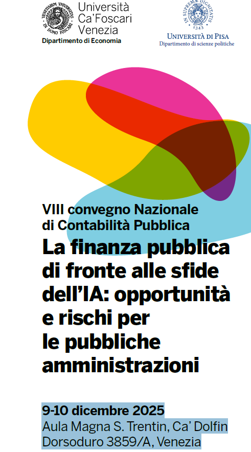 VIII convegno Nazionale di Contabilità Pubblica La finanza pubblica di fronte alle sfide dell’IA: opportunità e rischi per le pubbliche amministrazioni 9-10 dicembre 2025 Aula Magna S. Trentin, Ca’ Dolfin Dorsoduro 3859/A, Venezia