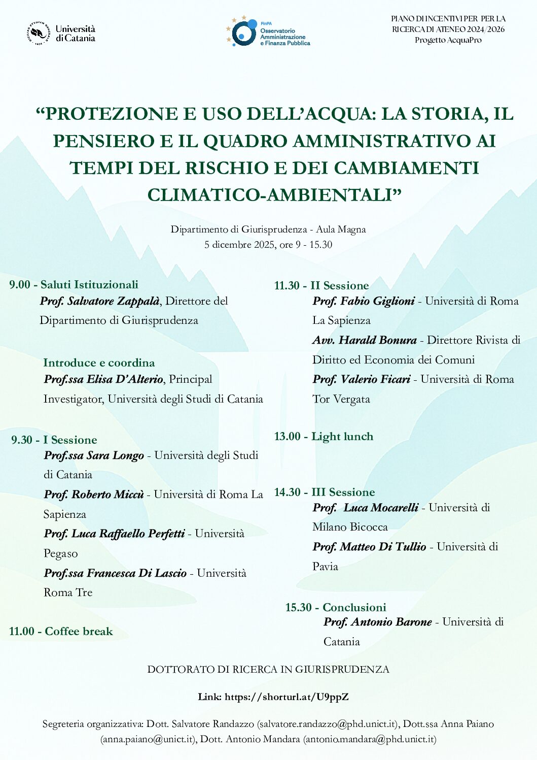 Dipartimento di Giurisprudenza - Aula Magna, Università degli Studi di Catania 5 dicembre 2025, ore 9 - 15.30 9.00 - Saluti Istituzionali Prof. Salvatore Zappalà, Direttore del Dipartimento di Giurisprudenza Introduce e coordina Prof.ssa Elisa D’Alterio, Principal Investigator, Università degli Studi di Catania 9.30 - I Sessione Prof.ssa Sara Longo - Università degli Studi di Catania Prof. Roberto Miccù - Università di Roma La Sapienza Prof. Luca Raffaello Perfetti - Università Pegaso Prof.ssa Francesca Di Lascio - Università Roma Tre 11.00 - Coffee break 11.30 - II Sessione Prof. Fabio Giglioni - Università di Roma La Sapienza Avv....